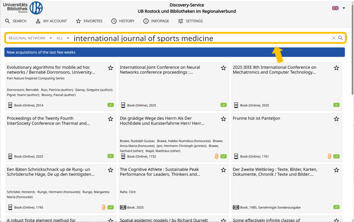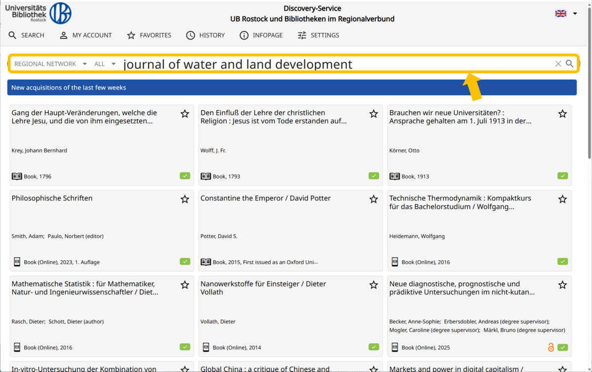 You can use both Discovery and the Catalogue to find journals and e-journals owned by Rostock University Library.