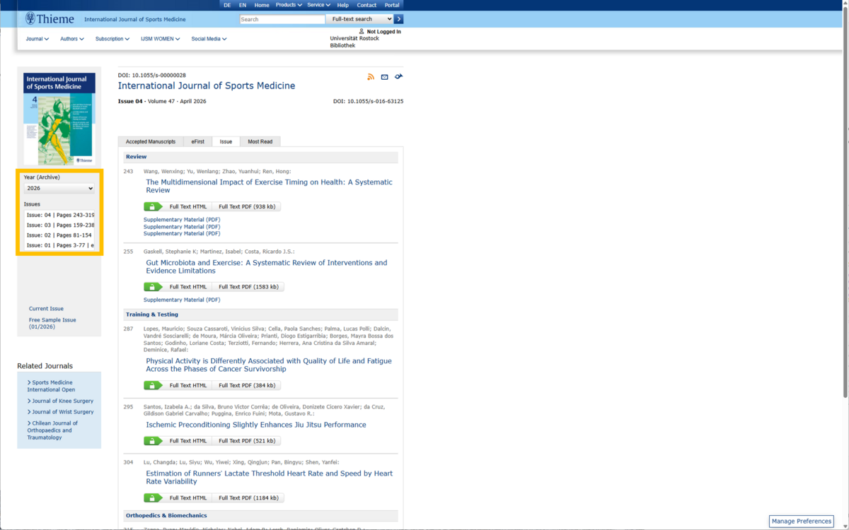 Click on "To the fulltexts" for the desired year to navigate to the publisher's web page.